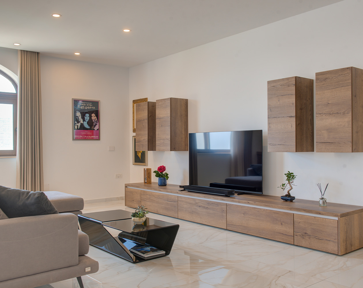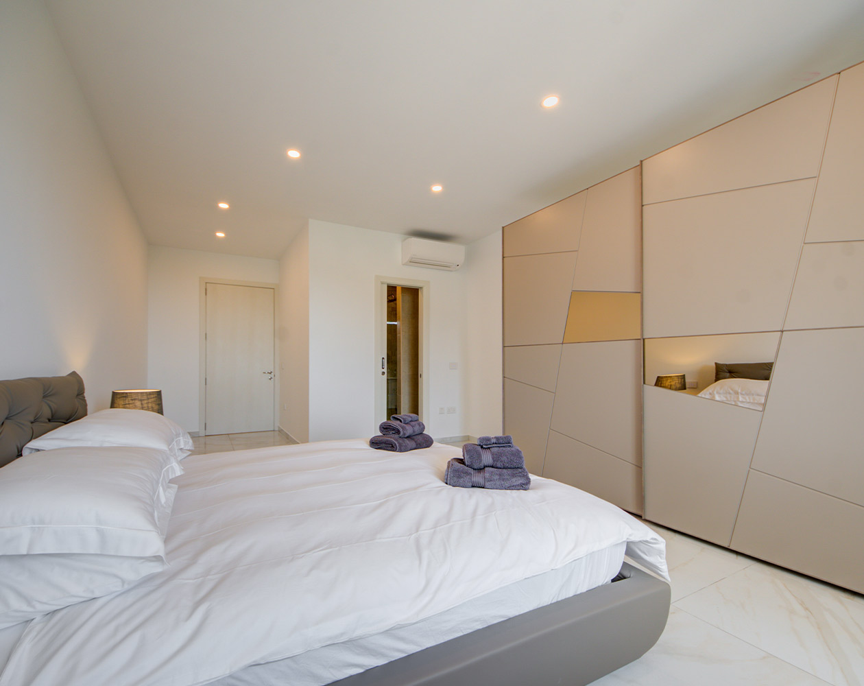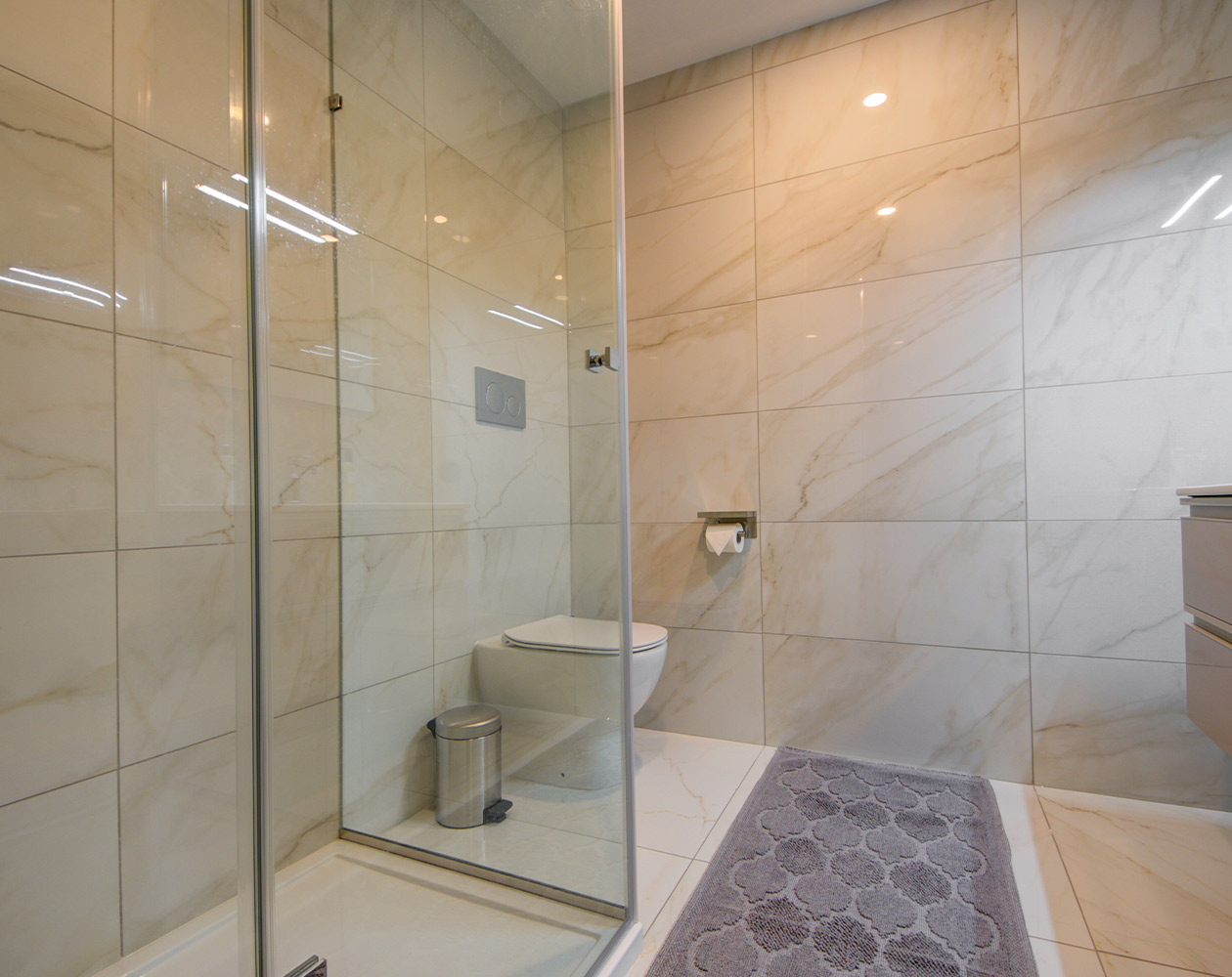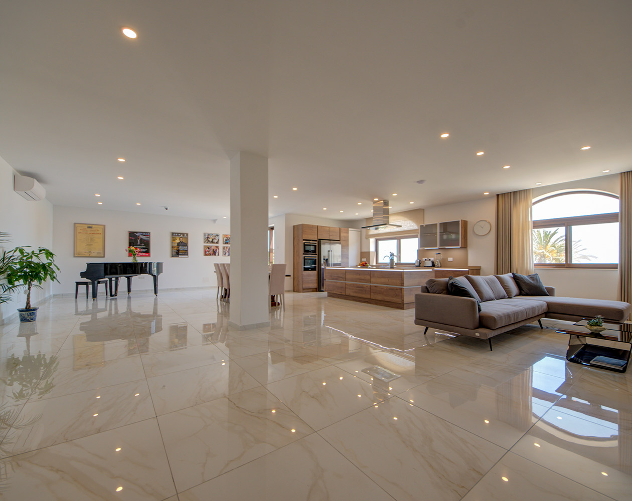 This brand new apartment is all about light and space. An open plan, fully equipped kitchen comes with an island and American style fridge with ice maker. The living room area has a large, comfy sofa with a 65 inch tv complete with Apple TV. Musicians are welcome to play the Petrov grand piano, but please do note that is not a toy, and children cannot play it unless genuinely practicing. There is also a large desk with office chair for those who need to work. Bedrooms are large and comfortable, one comes with an en suite, the other has its own bathroom too but not ensuite. All linen is high tread Egyptian cotton. For those keen on your devices, there is high speed wifi throughout the whole property.