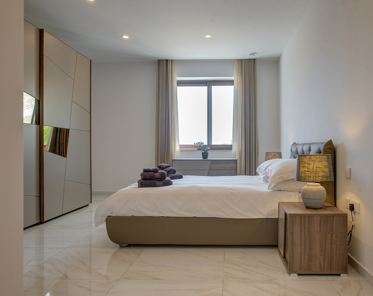 A beautiful, spacious, family and work friendly, serviced apartment with views in the most sought after residential area in Mellieha. The apartment is fully airconditioned. The use of a gym/ outdoor jacuzzi area, in the same building, is also included - please note the use of the outdoor jacuzzi is seasonal. The apartment is 15 minute walk to Malta's largest sandy beach (2 minutes by car) and relatively close to all amenities including supermarkets, shops, hairdressers etc.